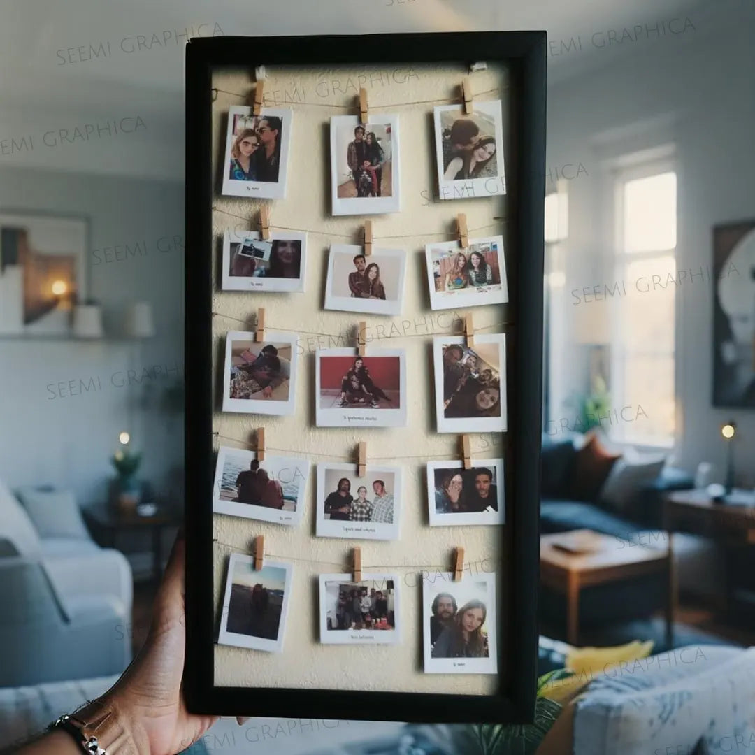 Capture your favorite memories with our 3D Custom 15 Polaroids-Style Photo Frame, perfect for commemorating weddings, anniversaries, birthdays, or home decor. Featuring stylish wooden clips, each print is uniquely personalized with your chosen text, making it a heartfelt gift or timeless keepsake. Add a touch of love and warmth to your living space today!
