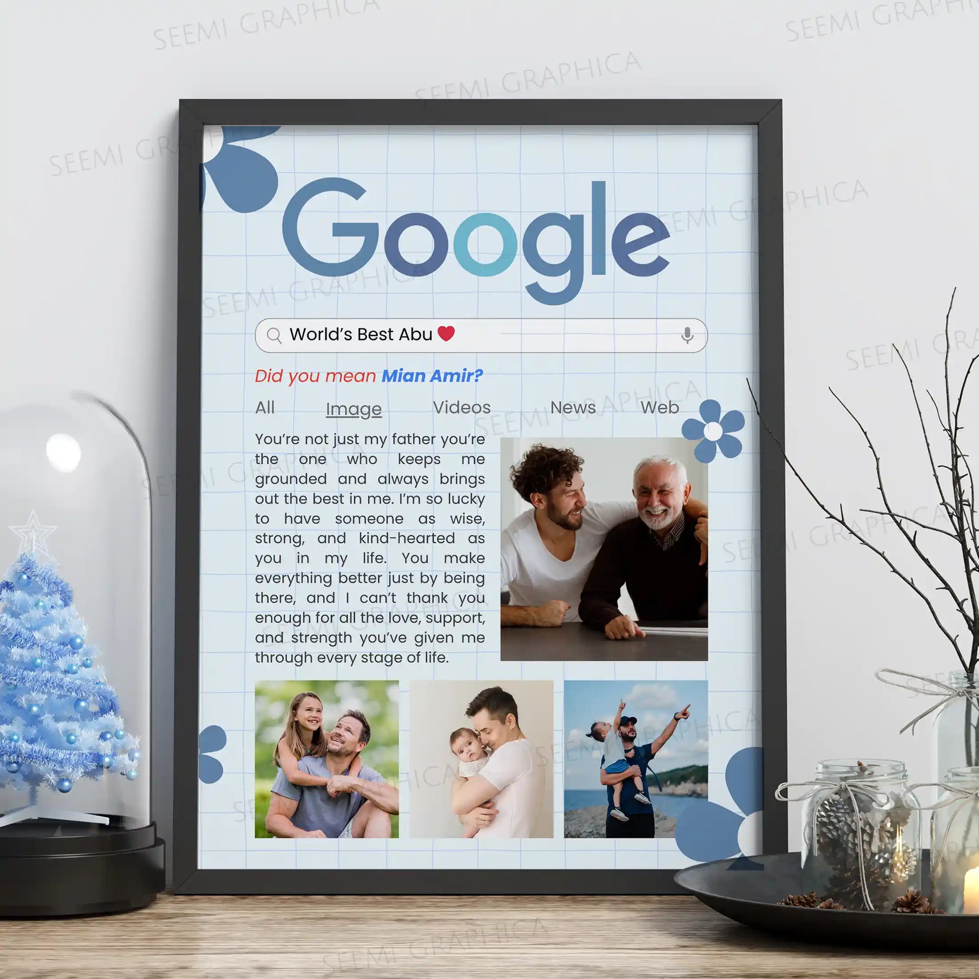 Looking for a unique, heartwarming gift that says it all? Our Custom Google Frame Photo is the perfect keepsake for your loved ones – whether it's for Father’s Day, anniversaries, birthdays, or just because! Designed to look like a real Google search, this adorable 7x10 in frame turns your feelings into a thoughtful, fun, and frame-worthy moment.