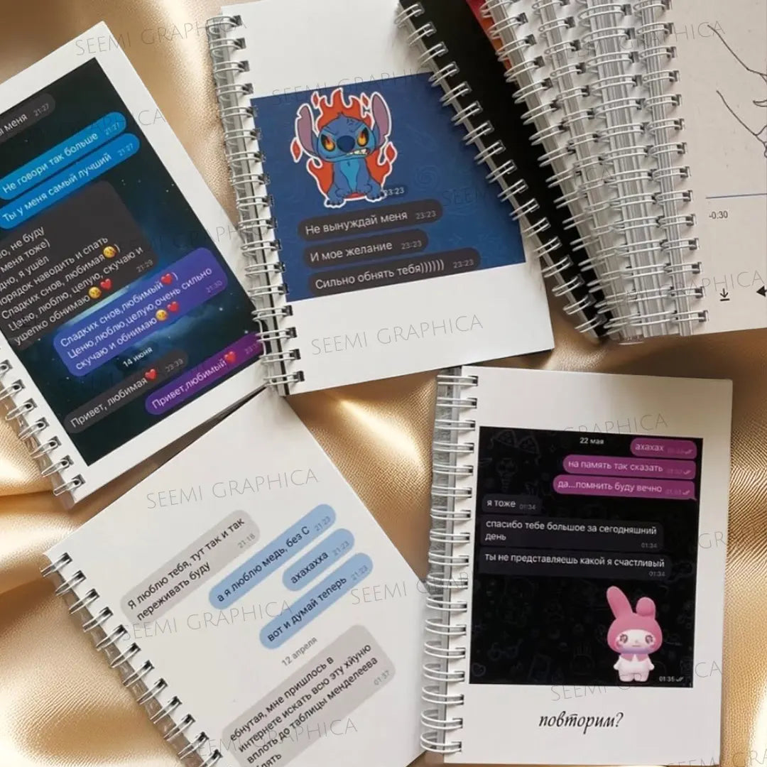 Preserve your favorite chats, heartfelt notes, and special pictures in the cutest way possible with our Mini Book! This durable notebook is available in A6 and A7 sizes, perfect for slipping into your bag or pocket. Whether it's a screenshot of a memorable conversation or a custom photo, this Book makes it easy to carry your memories wherever you go. Made with premium quality card, it’s a thoughtful, personal gift for any occasion.