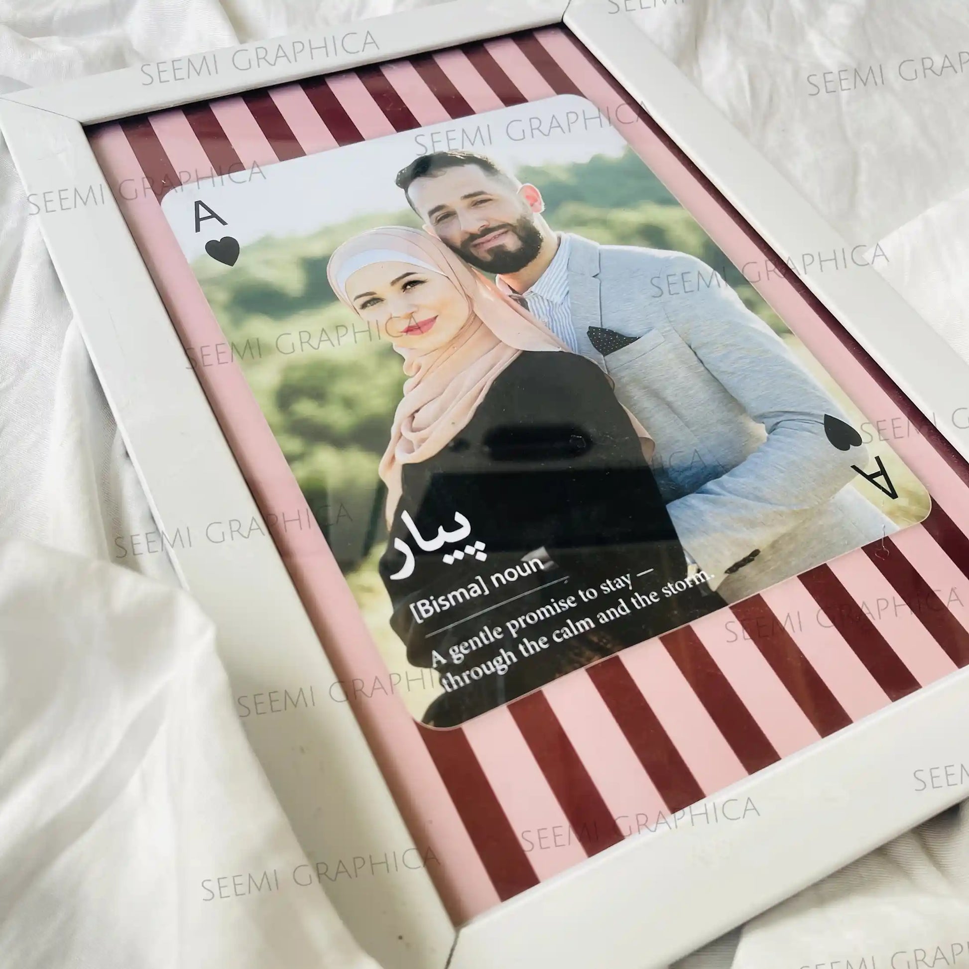 Celebrate your friendship with this dreamy, playing card-style wall frame featuring your favorite memory together. Designed in bold black for boys and dreamy purple for girls, this personalized art piece is a heartwarming keepsake and a perfect gift for birthdays, Friendship Day, or any special moment. A beautiful way to make your best friend smile!