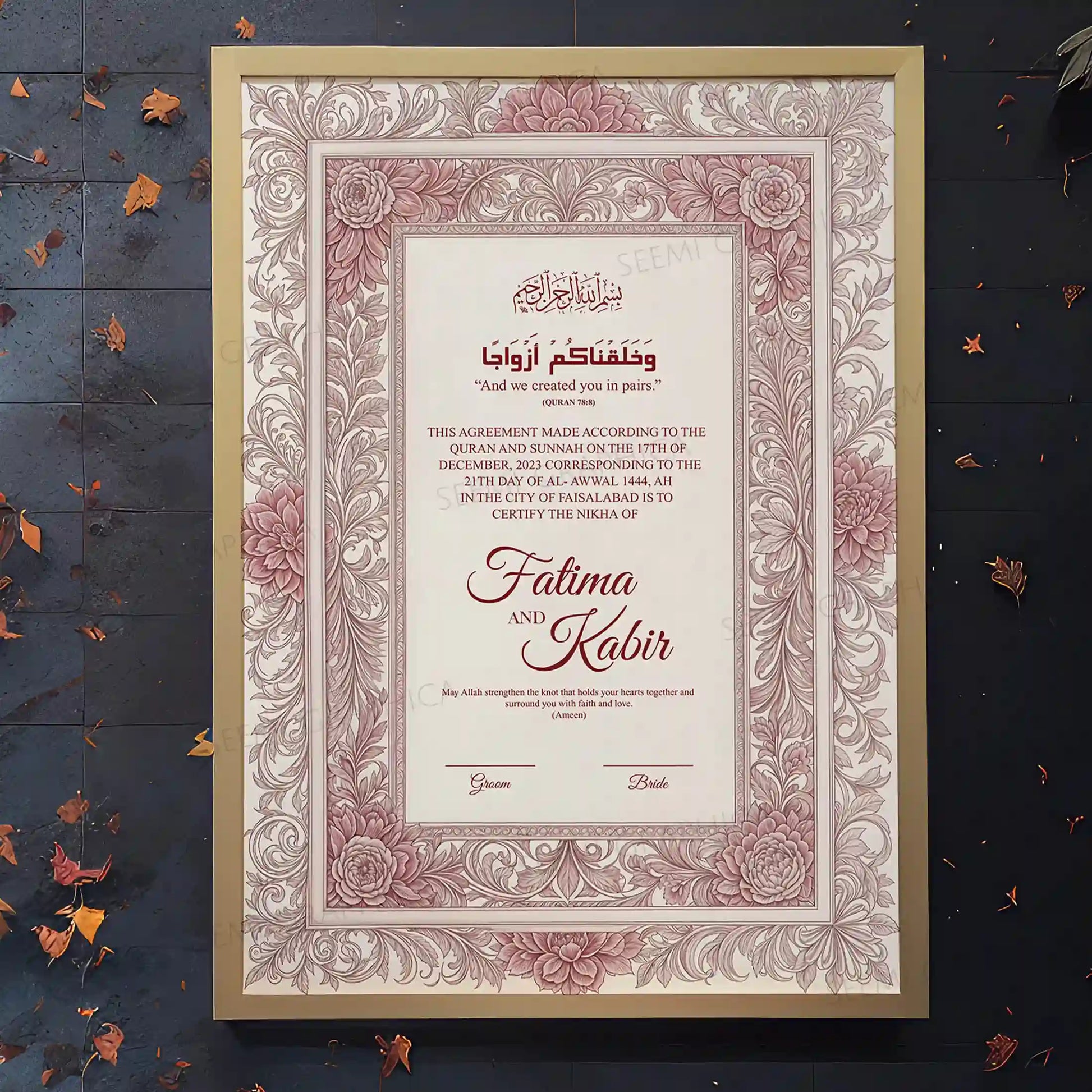 Personalized for You β Add your names and Nikah date.